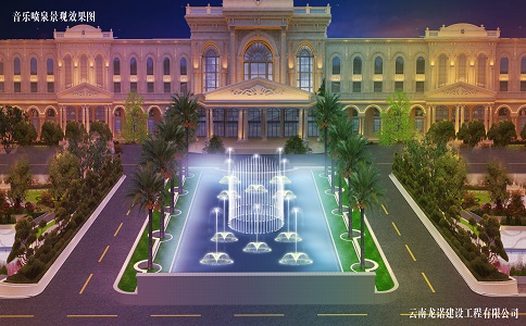 滇和緣昆明871婚禮藝術中心音樂噴泉即將完成。音樂噴泉作為一種集音樂、水景、燈光于一體的綜合性景觀,能夠為婚禮等慶典活動增添更多的浪漫和喜慶氛圍。